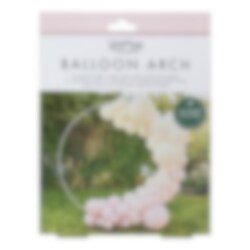 Luxe ballonnenboog in roze en neutrale tinten die je zelf bouwt. Een werkelijk schattige decoratie die geschikt is voor kinderfeestjes, feestjes of babyshower. De verpakking bevat in totaal 75 stuks ballonnen in verschillende maten en accessoires. De ballonnenboog is ongeveer 5 meter lang.