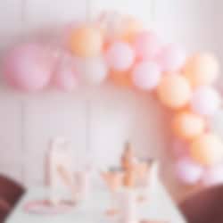 Prachtige ballonnenboog in roze en abrikoos tinten die je zelf bouwt. Een werkelijk indrukwekkende decoratie die geschikt is voor kinderfeestjes, feestjes of bruiloften. De verpakking bevat in totaal 60 stuks ballonnen in verschillende maten en accessoires. De ballonnenboog is ongeveer 5 meter lang.