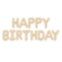 Prachtige ballonslinger die de woorden "Happy Birthday" vormt in een mooie beige kleur. De slinger is 340 cm lang en elke ballon is 35 cm hoog. De ballonnen hebben een zelfsluitend ventiel en kunnen gemakkelijk worden opgeblazen met een ballonpomp of met het meegeleverde rietje.