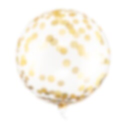 Een grote transparante bolvormige ballon gevuld met glimmende gouden confetti. Deze fijne confettiballon is perfect voor alle feestelijke gelegenheden.
