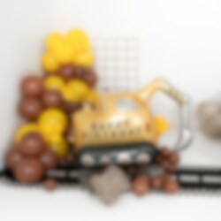 Folieballon die een coole graafmachine voorstelt - de perfecte decoratie voor een kinderfeestje met voertuigen tema!