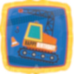 Folieballon in de kleuren geel, oranje en donkerblauw en met een motief van een stoere hijskraan met de tekst "Happy Birthday". Een stoere decoratie om naar het kinderfeestje te brengen met een voertuig thema. De ballon is ongeveer 43 cm opgeblazen en opgeblazen met lucht of helium.