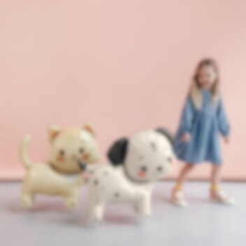 Een schattig katje op wielen dat over de vloer kan rollen, net zo leuk om mee te spelen als om mee te decoreren! De warme kleuren en het speelse ontwerp passen perfect bij kattenkinderfeestjes en andere kinderfeestjes.