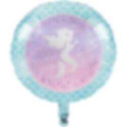 Glinsterende folieballon in mooie kleuren met een motief van een zeemeermin. Een perfecte decoratie voor het zeemeermin kinderfeestje. Opgeblazen heeft de ballon een diameter van ongeveer 45 cm.