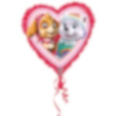 Mooie hartvormige folieballon met afbeeldingen van Skye en Everest uit Paw Patrol. Een schattige decoratie voor een kinderfeestje. Opgeblazen heeft de ballon een formaat van ca. 45 cm.