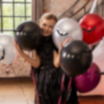 Geef je halloweenversiering een extra dimensie met deze ballonnen en vliegende vleermuizen in 3D. Een leuke DIY-decoratie die zorgt voor een feestelijke en mysterieuze sfeer. De set bevat zes ballonnen in donkere, metallic kleuren en acht vleermuizen met lijmprikkers die je eenvoudig op de ballonnen bevestigt voor een opvallend effect.