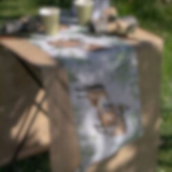 De tafelloper is gemaakt van polyester en heeft een breedte van ongeveer 30 cm en een lengte van 5 meter.