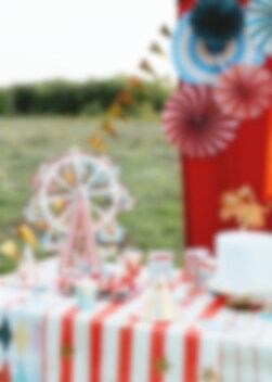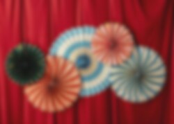 Breng de magie van het circus naar je feest met deze kleurrijke decoratieve rozetten! Deze set bevat vijf papieren rozetten in verschillende formaten (26 tot 43 cm) in levendige kleuren zoals rood, blauw, beige en donkergroen. Ze hebben een charmante vintage uitstraling en zijn perfect als wanddecoratie voor een circusfeestje, verjaardag of een ander vrolijk evenement. Gemakkelijk op te hangen en herbruikbaar voor meerdere feesten!