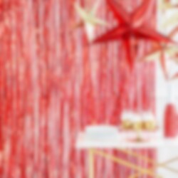 Verijdelde deurgordijnen in een glinsterende rode kleur. Een chique decoratie om in een deuropening of aan de muur te hangen voor het kinderfeestje, feestje of babyshower. Het deurgordijn is ongeveer 90 x 250 cm groot. Houd er rekening mee dat tape of iets dergelijks om de decoratie te bevestigen niet wordt meegeleverd.