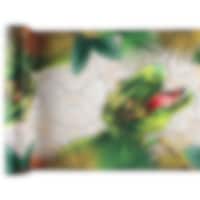 Het is in totaal 210 x 150 cm groot en is gemaakt van duurzaam polyester, waardoor het meerdere keren kan worden gebruikt. Het wordt opgehangen met behulp van de vier meegeleverde satijnen linten die je bevestigt door metalen ringen in elke hoek.