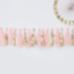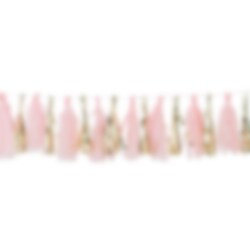 Leuke slinger met verschillende kwastjes in roze en goud. Een leuke decoratie voor de Babyshower. De slinger heeft in totaal 16 stuks kwastjes en is ongeveer 2 meter lang.