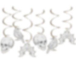 Creëer de juiste sfeer voor je halloweenfeest met deze griezelige decoraties uit de Creepy Curiosities serie! De set bevat zes gouden hangspiralen met gedetailleerde kartonnen afbeeldingen van vleermuizen, schedels en andere enge figuren.