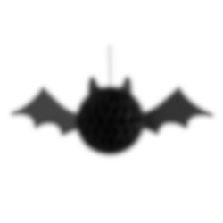 Deze decoratieve vleermuis heeft een ronde body van zwart honeycomb-papier en brede vleugels van stevig papier. Perfect als decoratie aan het plafond, bij de ingang of boven een feestelijk gedekte tafel.