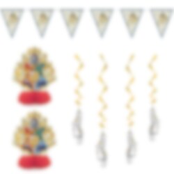 Supercoole decoratiepakket met Harry Potter-afbeeldingen. Gebruik deze set om de feestzaal extra leuk te maken voor een Harry Potter-themafeest. De set bevat 2 stuks tafeldecoraties in honeycomb, 4 hangende decoraties en een vlaggenlijn.