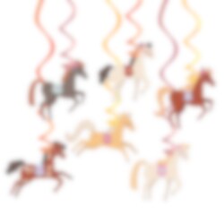 Creëer de perfecte sfeer met deze vrolijke hangdecoraties met kleurrijke paarden! Ideaal voor een paardenfeestje of een stalthema. De decoraties zijn ongeveer 85 cm lang en de paarden zijn ca. 16–18,5 cm groot. Gemaakt van karton.