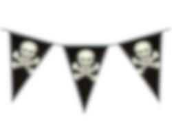 Stijlvolle vlaggenslinger van kunststof met een stoer piratenmotief. Hang deze boven de feesttafel om een leuke sfeer in de kamer te creëren. De slinger is ongeveer 4 meter lang.