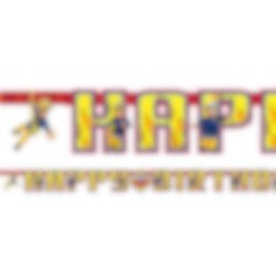 Leuke slinger met de tekst Happy Birthday en met Brandweerman Sam motief. Hang deze in de feestzaal om een leuke sfeer te creëren. De slinger is ongeveer 180 cm lang.