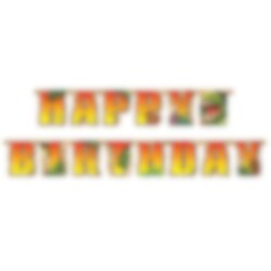 Deze Happy Birthday-slinger van papier is een spannende decoratie voor alle dinosaurusliefhebbers. Met een lengte van 220 cm is deze stoere slinger perfect om een avontuurlijke sfeer te creëren op het kinderfeestje.