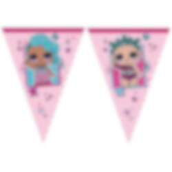 Indrukwekkende vaggenlijn van kunststof in schattige kleuren en met motieven van Cosmic Queen en Splash Queen van de LOL Surprise-groep The Glitterati. Een leuke decoratie om de kamer mee te decoreren als het tijd is voor een kinderfeestje. De slinger is ongeveer 2,3 meter lang en heeft aan beide kanten motieven.