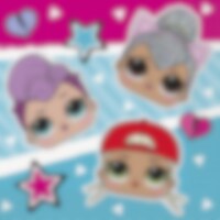 16 kleine servetten met grappige LOL Surprise-afbeeldingen. De servetten hebben 2 lagen en zijn uitgevouwen 25 x 25 cm.