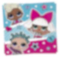 16 servetten met LOL Surprise-afbeeldingen. De servetten hebben 2 lagen en zijn uitgevouwen 30 x 30 cm.