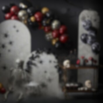 Een stijlvolle slinger met zwarte klimopbladeren die zorgt voor een griezelige maar elegante Halloween-sfeer. Perfect om tafels, planken of muren mee te versieren en zo de kamer een feestelijke en mysterieuze uitstraling te geven. De slinger is 1,8 meter lang en gemaakt van plastic.