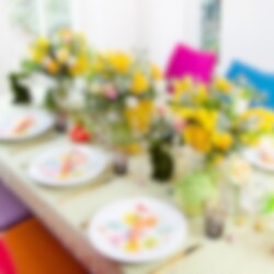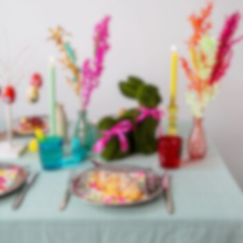 Schattig konijn bedekt in grasachtig materiaal. Versier de tafel met deze om de stemming te verhogen voor het kinderfeestje of het feest. Het konijn is gemaakt van plastic en is ongeveer 15 cm groot.