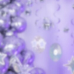 Creëer een sprankelend decor met deze feestelijke discoslinger. De sterren, muzieknoten, discoballen en microfoons met holografische glans maken hem perfect voor aan de muur, op tafel of als achtergrond voor foto’s. De slinger is 110 cm lang en de decoraties zijn ongeveer 12–14 cm groot – ideaal om direct de juiste feeststemming neer te zetten.