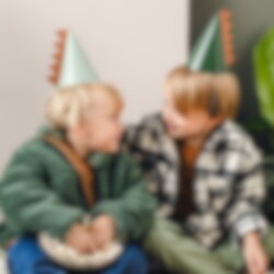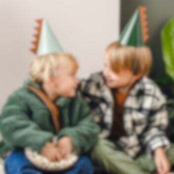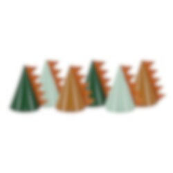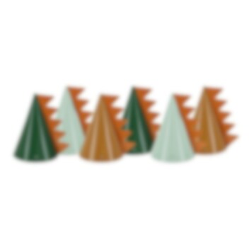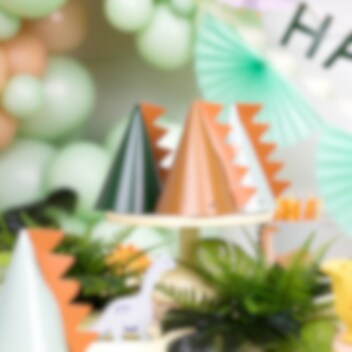 6 feestelijke feesthoedjes die je dinosaurus kinderfeestje omtoveren tot een prehistorisch feestje. De hoedjes zijn 14 cm hoog en zijn gemaakt van papier. Ze worden op hun plaats gehouden door een elastische band.