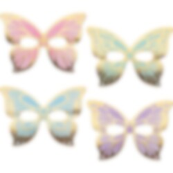 8 gezichtsmaskers die vlinders voorstellen in 4 verschillende pastelkleuren en goudfolie die perfect zijn om te dragen als er kinderfeestje zijn met een vlinderthema. De Maskers worden met een elastische band vastgezet.