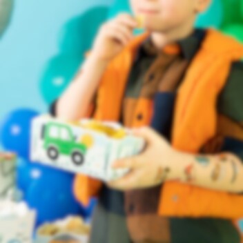 3 snackbakjes met mooie voertuigmotieven, perfect om te vullen met snacks of snoep en tegelijkertijd decoratief."