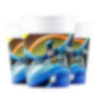 6 gevormd uitnodigingskaartjes met Batman op een motorfiets. Gebruik deze om je vrienden uit te nodigen voor een leuk Batman kinderfeestje.