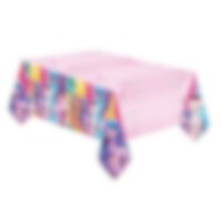 Kleurrijk plastic tafelkleed met betoverende afbeeldingen van My Little Pony. Perfect om een magische feeststemming te creëren en de tafel om te toveren tot een kleurrijke ponywereld. Het tafelkleed meet 120 x 180 cm en past op de meeste tafels.