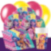 Breng de magische wereld van My Little Pony tot leven met dit complete feestpakket! Het bevat borden (23 cm), papieren bekers (260 ml) en servetten (33 x 33 cm) in kleurrijk My Little Pony-design, geschikt voor 8 of 16 gasten, ideaal voor een vrolijk kinderfeest of een betoverende verjaardag. Daarnaast vind je in de set 10 felroze ballonnen, 10 gele ballonnen en een donkerpaars tafelkleed van plastic (137 x 274 cm), perfect om een feestelijke en magische sfeer te creëren. Maak jouw My Little Pony-feest compleet met uitdeelzakjes, feestboxen, snoepjes, speelgoed en feestdecoraties. Zo beleven de kinderen een dag vol plezier, vriendschap en avontuur, een verjaardag die ze niet snel zullen vergeten!