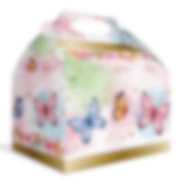 Creëer een magische feestervaring met deze Feestbox versierd met mooie vlinders. Vul het met kleine cadeautjes en lekkernijen. De box is van karton, eenvoudig te monteren en heeft de afmetingen 20 x 16 cm. Verkocht per stuk.