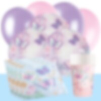 Laat de vrolijke wereld van vlinders tot leven komen met dit complete feestpakket in vlinderthema! Het pakket bevat borden (23 cm), papieren bekers (250 ml) en servetten (33 x 33 cm), geschikt voor 8 of 16 gasten, ideaal voor een kleurrijk kinderfeest of een speelse verjaardag. Daarnaast vind je in de set 10 roze ballonnen, 10 paarse ballonnen en een lichtblauw tafelkleed van plastic (137 x 274 cm), perfect om een feestelijke en magische sfeer te creëren. Maak jouw feest compleet met uitdeelzakjes, feestboxen, snoepjes, speelgoed en bijpassende vlinderdecoraties. Zo beleven de kinderen een dag vol kleur en vrolijkheid, een verjaardag die ze nog lang zullen herinneren!