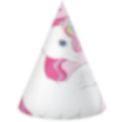 6 feesthoedjes met schattige eenhoornmotieven. Leuk voor een kinderfeestje met eenhoornthema.
