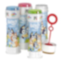 Bellenblaas in een fles met kleurrijke afbeeldingen van Bluey. Bellenblaas is een populair cadeau voor kinderfeestjes en het is leuk om samen bellen te blazen. De prijs is per stuk en de fles bevat 60 ml.