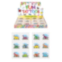 Set van 6 tijdelijke neptattoos met kleurrijke dinosaurussen. Leuk om uit te delen tijdens een kinderfeestje of om mee te geven in een uitdeelzakje. Elke tattoo is ca. 3,5 cm groot en eenvoudig los te maken van het vel dankzij de perforatielijnen.