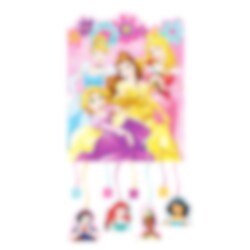 Een eenvoudigere pinata met leuke motieven van de verschillende prinsessen uit de film Disney Princesses. Vul de pinata met verschillende snoepjes en klein speelgoed. Deze piñata is een pinata met lint en gaat open door aan het juiste lint te trekken en alle verrassingen vallen eruit. De piñata wordt verkocht zonder inhoud en is ongeveer 21 x 27 cm groot.