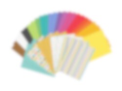 Tekenpapier in regenboogkleuren en fijne patronen. Leuk om te geven aan het kind dat graag tekent. De verpakking bevat 34 stuks A4-papier dat ongeveer 21 x 29,7 cm groot is.