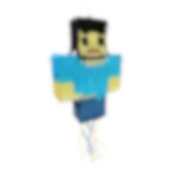 Stoere piñata in de vorm van Mr Pixel, ideaal voor een kinderfeestje in Minecraft-thema. Vul de piñata met snoepjes of klein speelgoed en laat de kinderen om de beurt aan de linten trekken om te ontdekken waar de verrassing zit. De piñata is ca. 40 × 28 × 7,5 cm groot.
