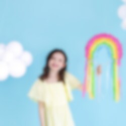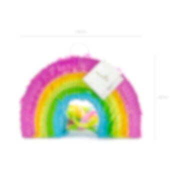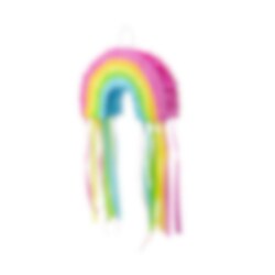 Coole piñata in de vorm van een kleurrijke regenboog. Een leuk item om mee te nemen naar het kinderfeestje, zowel als speelgoed of als tafeldecoratie. Vul de piñata met snoep en speelgoed en laat de kinderen om de beurt aan een lint trekken om te zien wie hem leegmaakt.
