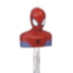 Stoere piñata in de vorm van Spiderman. Trek om de beurt aan een lint en kijk welk lint de inhoud vrijgeeft (inhoud apart verkrijgbaar). De piñata is 38 cm breed en 42 cm hoog.