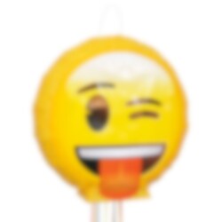 Deze vrolijke emoji-piñata is een feestelijke toevoeging aan het verjaardagsfeestje! Met zijn gekke uitdrukking en kleurrijke linten is het zowel een decoratie als een leuk spel. De kinderen trekken één voor één aan de linten – maar slechts één opent de piñata en laat het snoep eruit vallen. Lachen en spanning gegarandeerd!