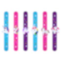 Leuke klikarmbandjes met afbeeldingen van eenhoorns in verschillende kleuren. Een geweldig speeltje om in een uitdeelzakje te stoppen tijdens een kinderfeestje. Wordt ongesorteerd per stuk verkocht.