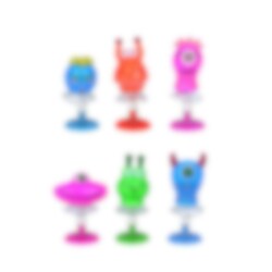 Het speelgoed is verkrijgbaar in zes verschillende kleuren, maar ze worden ongesorteerd en per stuk verkocht, dus het is een verrassing welke je krijgt. Ze zijn 4-5 cm hoog.