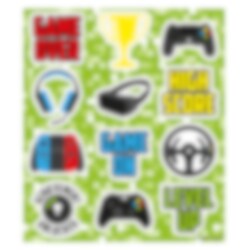 12 stickers met verschillende videogame-afbeeldingen. Leuk om in het uitdeelzakje of feestbox te doen als het tijd is voor een kinderfeestje met een videogame-thema.