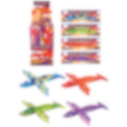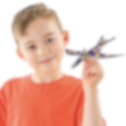 Bouw je eigen vliegende dinosaurus. Leuke verrassing voor in het uitdeelzakje of voor jezelf. Organiseer een leuke "welke dinosaurus vliegt het verst" wedstrijd. Wordt het een mooie vlucht of een noodlanding? De dinosaurus is verkrijgbaar in vier verschillende designs en wordt per stuk en ongesorteerd verkocht. Het zweefvliegtuig is gemonteerd ongeveer 17 x 12 cm.
