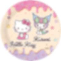 8 papieren bekers met afbeeldingen van Hello Kitty en Kuromi, een schattig en speels detail dat de tafel extra feestelijk maakt. De pastelkleuren en het ijsjes thema passen perfect voor ranja, frisdrank of andere drankjes tijdens het kinderfeestje.